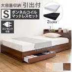 最安値に挑戦中!14日0:00~26日9:59 ベッド 収納ベッド ボンネルマットレスセット シングル シングルベッド コンセント付き 収納付き 収納