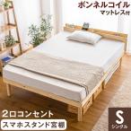 ベッド マットレスセット シングル すのこベッド ベッドフレーム コンセント付 マットレスベッド ボンネルコイル 宮付き 天然木 ベット